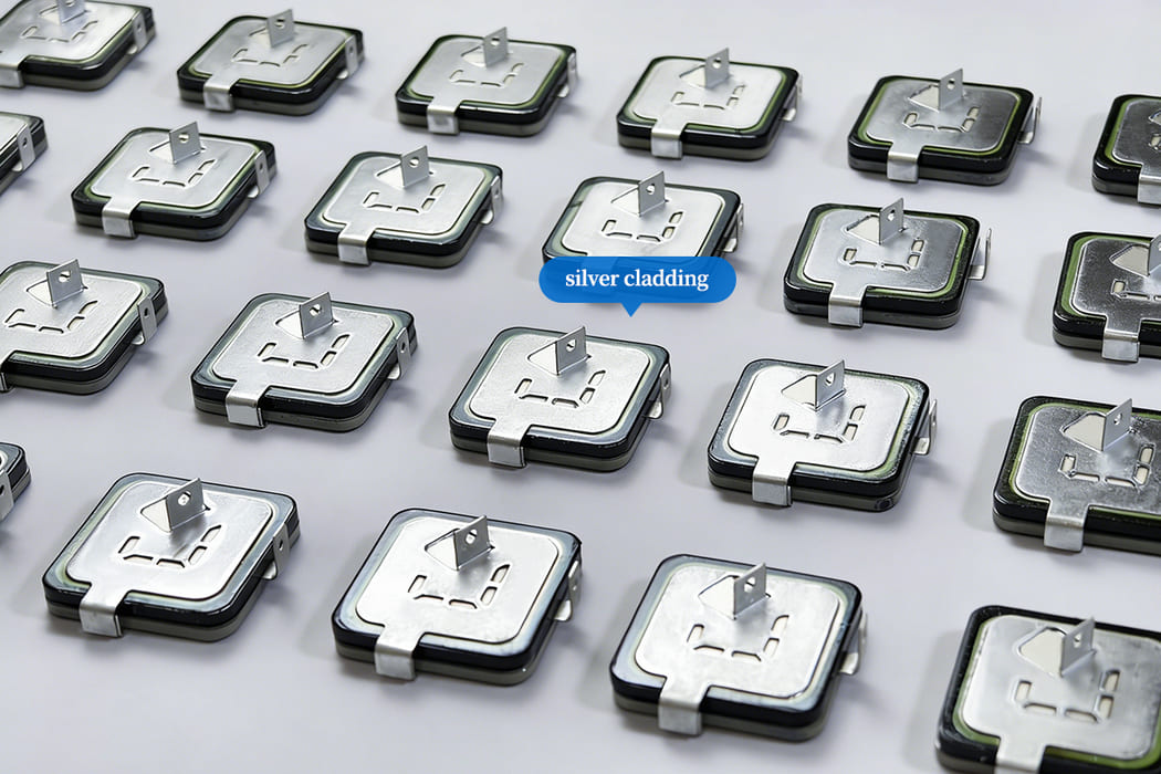 技术功能:热断开机制是一种安全机制,旨在金属氧化物压敏电阻 (MOV) 性能下降或过热时将其与电源隔离。此处需要使用银,因为银具有优异的导电性和抗氧化性,可确保多年稳定连接,并最大限度地减少断开过程中产生的电弧。图 5 显示了集成到我们热盘中的关键银触点。我们依靠银优异的导电性和抗氧化性来确保在热事件期间 MOV 稳定、无电弧分离。