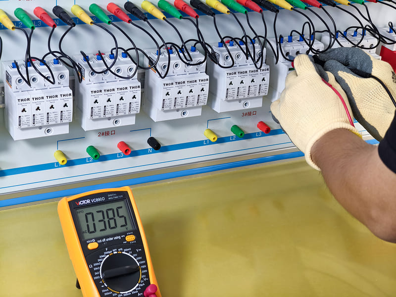 •万用表测试: 使用万用表测试SPD时,通常检查电压和电阻以评估其运行状态。